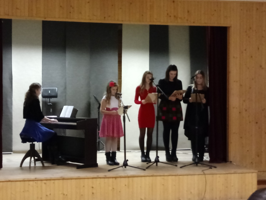 14. decembra vianočne vyzdobili kinosálu kultúrneho domu a p. uč. Eva Kubincová nás privítala a postupne uvádzala každého hudobníka s názvom skladby, ktorú bude hrať.